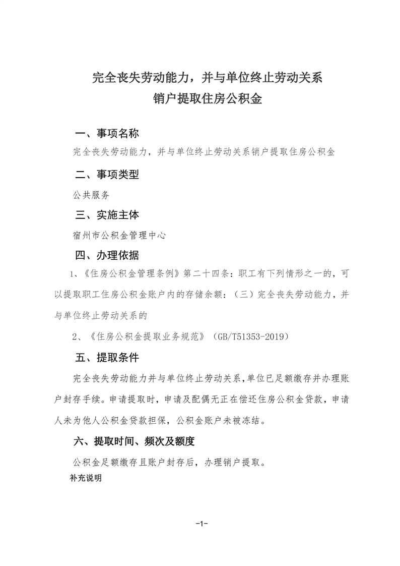 完全丧失劳动能力,并与单位终止劳动关系销户提取住房公积金