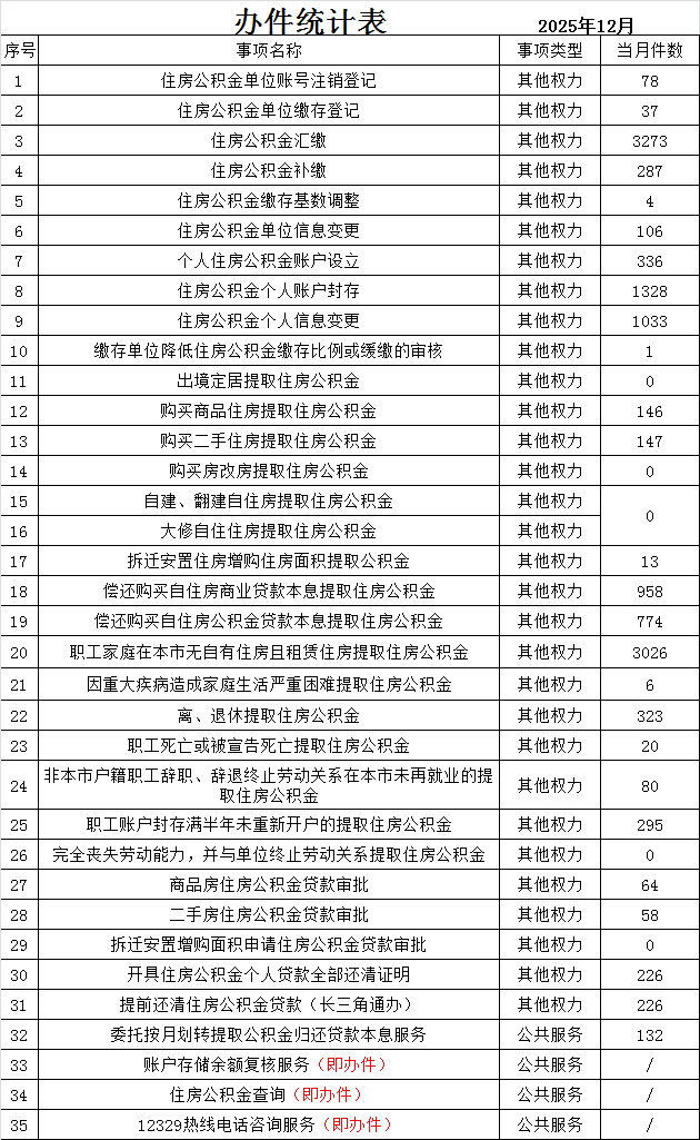 市公积金服务中心2025年12月办件统计表